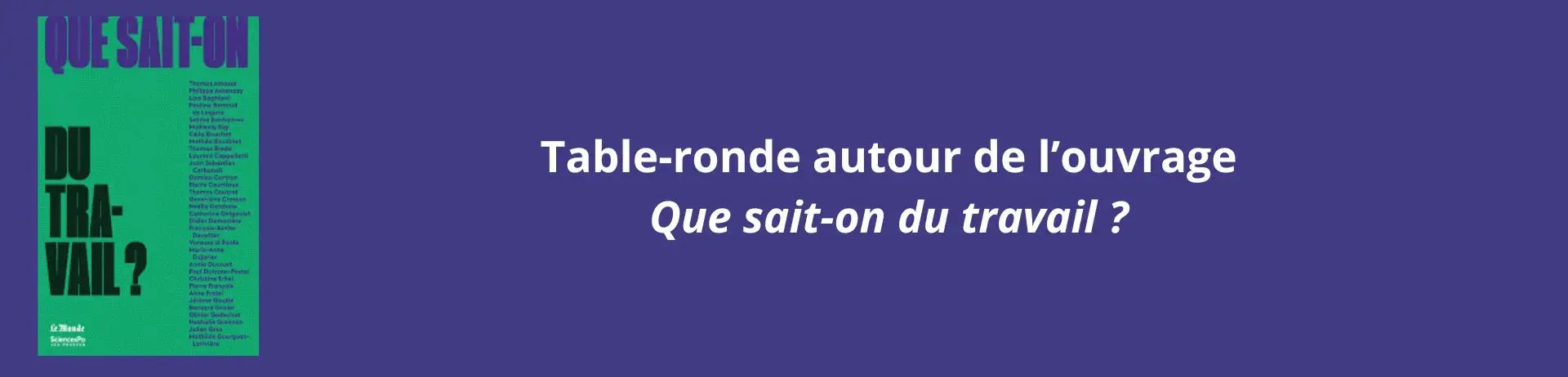 Table-ronde autour de l'ouvrage Que sait-on du travail ? publié par un collectif d'auteurs aux Presses de Sciences Po en 2023.